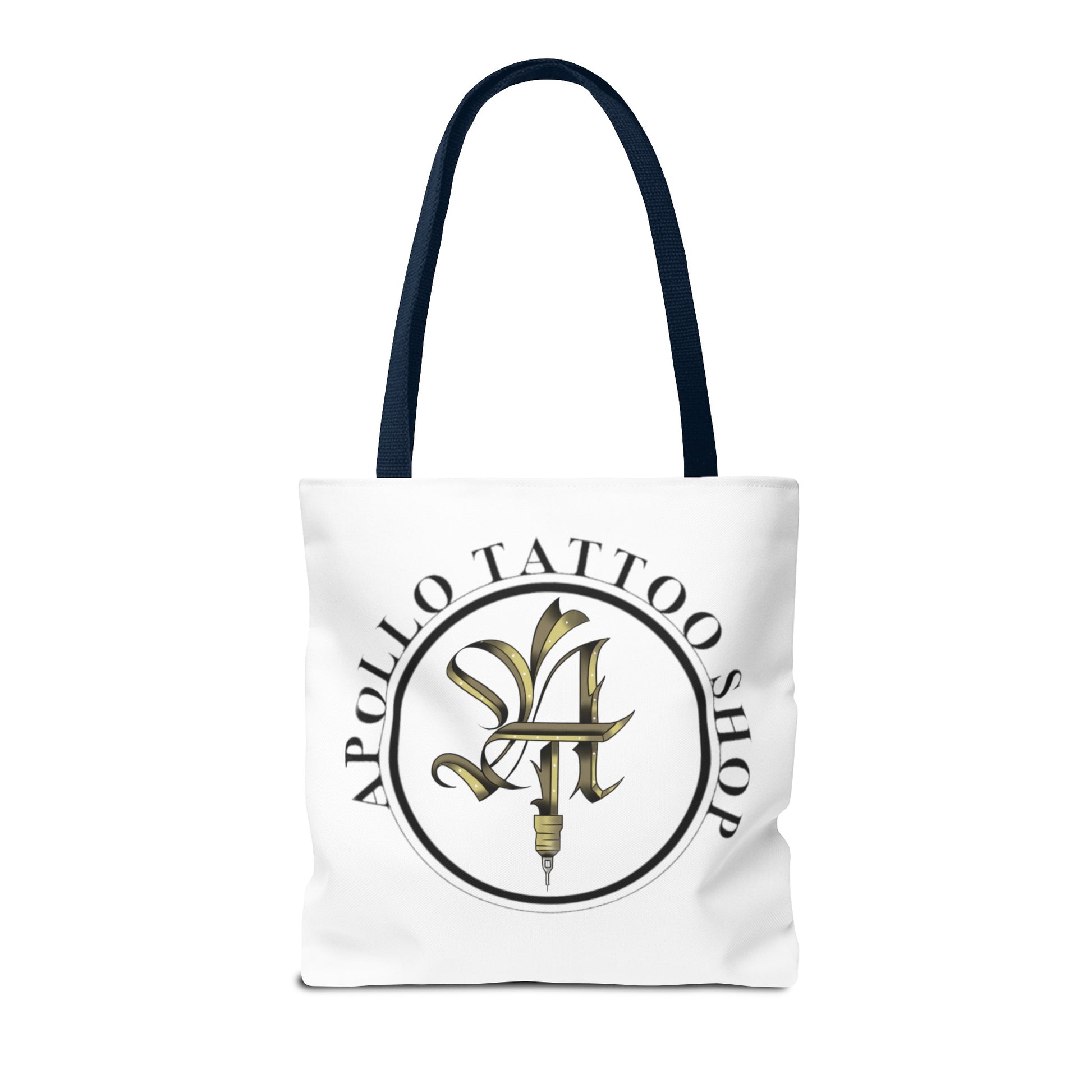 Available in 3 sizes to add both functionality and style, these Apollo Tattoo Shop tote bags come with multiple handle colors. Made with spun polyester, these bags feature double-stitched seams, cotton webbing straps, and nonwoven laminate lining for high-end durability. Your all-over print is created with dye sublimation for high-end visuals.